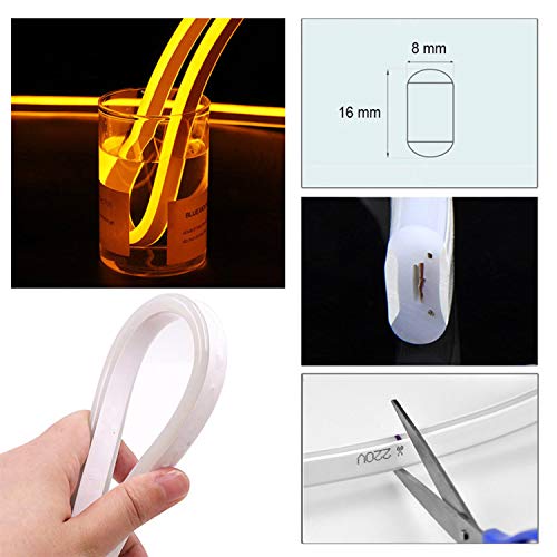 FOLGEMIR Striscia al neon - 20m bianco caldo - Luminescenza a doppia faccia, molto flessibile, Striscia luminosa LED 2835, 220V, IP65 impermeabile, DIY decorazione per casa, bar, Natale
