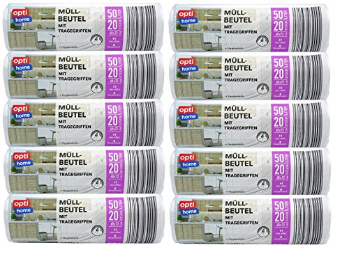 Folia - Sacchi della spazzatura con manico, 50 litri, 20 pezzi per rotolo, trasparente, 10er