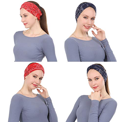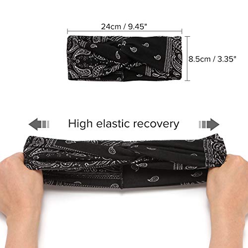 Folora 6Pcs Fascia per donna con motivo Paisley, sciarpa a turbante con nodo intrecciato con boemia floreale, accessori per capelli elastici per corsa e yoga