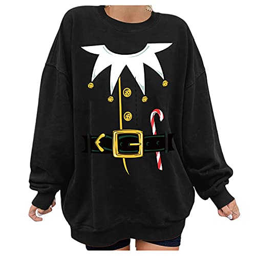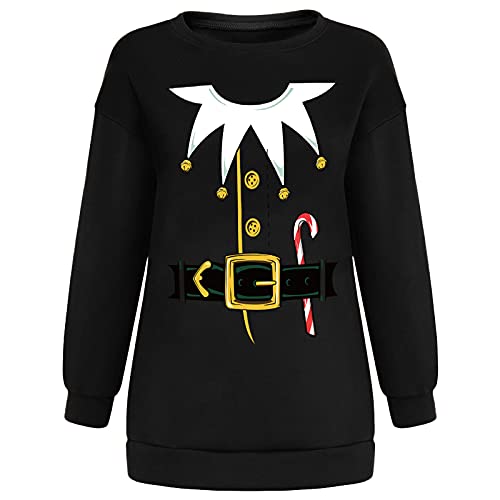 Fomino Maglione natalizio da donna, maglione natalizio, a maniche lunghe, con scollo rotondo, ideale per la streetwear, Nero-10., S