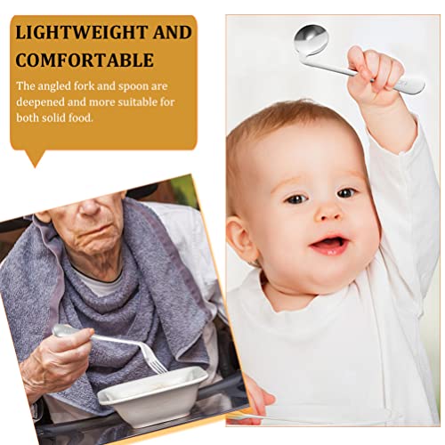 FOMIYES Forchetta Angolata Cucchiaio Utensili Adattivi Posate Angolate Anti-Targing Forchetta Adattiva Ergonomica Per Bambino Adulto Paziente Anziano Alimentazione Indipendente (Direttiera)