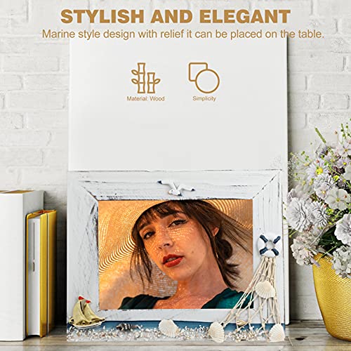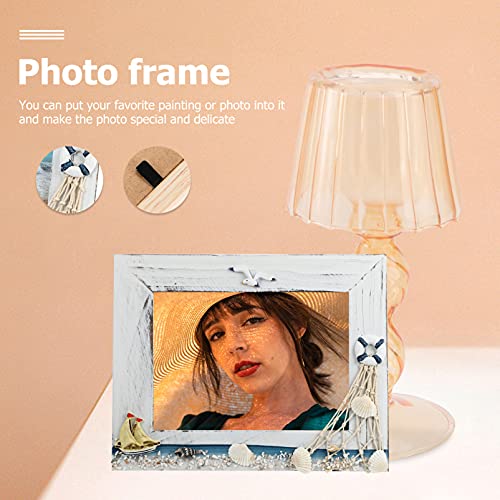 FOMIYES Foto Cornice di Legno Photo Frame con Conchiglia di Trasporto Marittimo da Pesca Barca A Vela per I Regali di Trasporto Marittimo Mare Spiaggia Costiera di Ornamenti