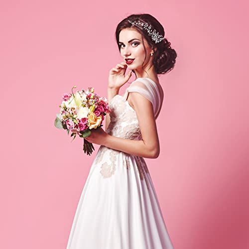 FOMIYES Leaf Wedding Hair Vine Rhinestone Bridal Hair Piece Crystal Pearl Perline Copricapo Copricapo Gioielli per per Le Donne Ragazze Argento