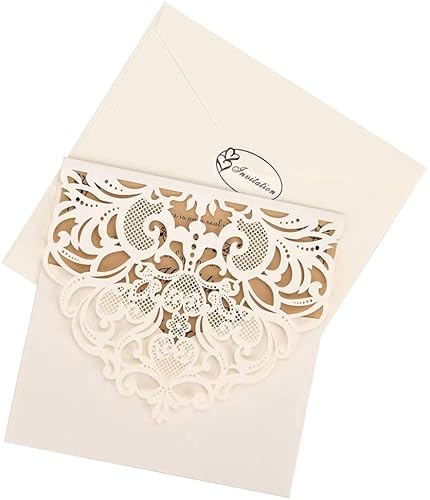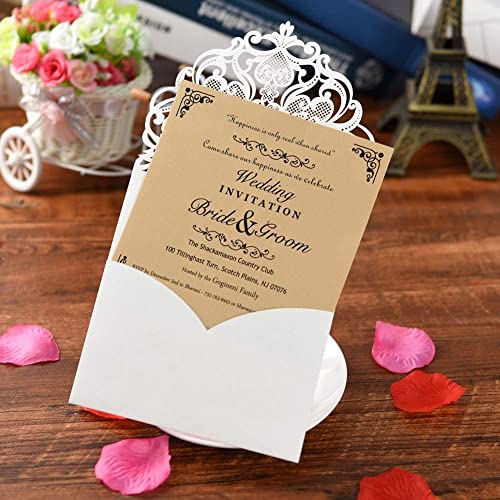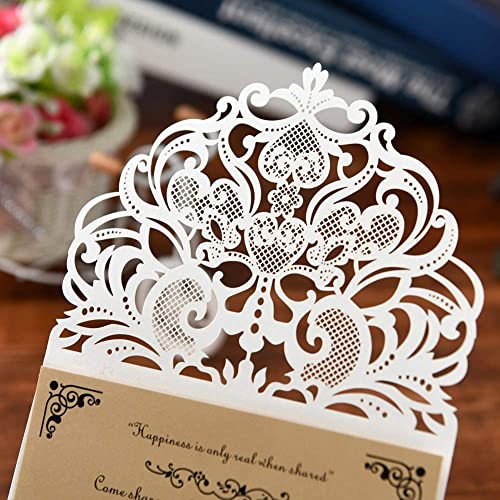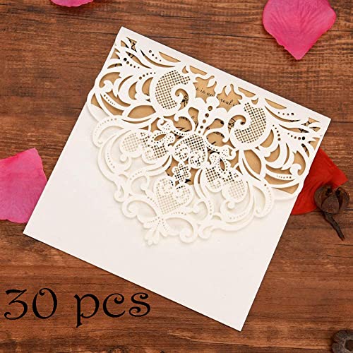 FOMTOR Confezione da 30 Inviti di Nozze Tagliati al Laser, con Buste e Biglietti Interni Bianchi per Matrimoni, Feste di Compleanno, Festa per la Nascita di un Bimbo, Bianco