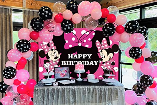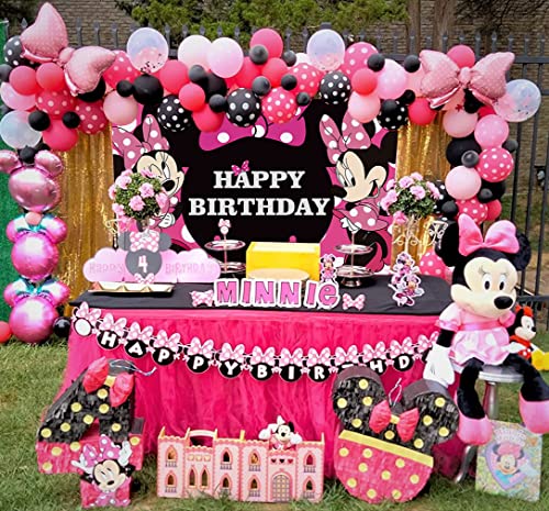 NSY - Fondale per fotografia con Minnie Mouse, 2,1 x 1,5 m, motivo: cartone animato, per il primo compleanno, per bambine, per feste di nascita, 210 cm x 150 cm