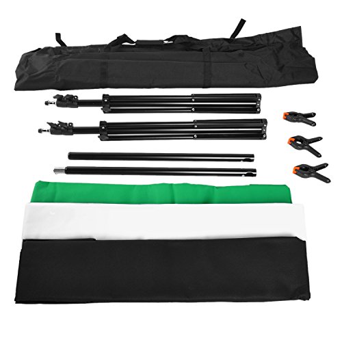 BPS Fondale Fotografico Kit Sfondo Supporto Alluminio+Sfondi Di 3.2x1.6m Tessuto non Tessuto Nero,Bianco,Verde + Borsa per il trasporto sono Studio Fotografico Professionale