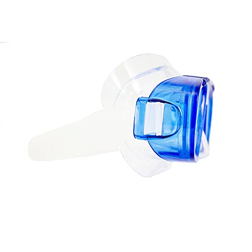 Maschera regolabile con fascia in PVC flessibile e priva di ftalati.