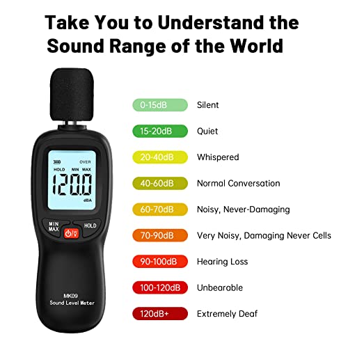 【Portatile Fonometro】Piccolo e facile da usare, adatto per il controllo della qualità del suono nelle stanze dei bambini, negli uffici, nelle case, nelle scuole e nei cantieri, ecc.