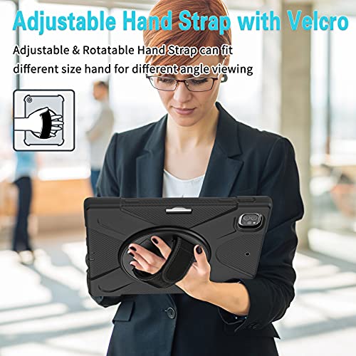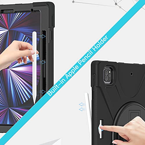 Fonrest Custodia con Cavalletto per iPad Pro 12,9 (2021) con Portamatite, Cover Ibrida Robusto Antiurto con Impugnatura Girevole a 360°, Tracolla (A2378/A2379/A2461/A2462), Nero
