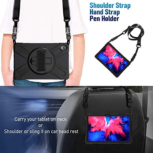 FONREST - Custodia resistente per Lenovo-Tab-P11/P11 Plus/P11 5G (TB-J606F/J607F/J616F/J607Z), Cover ibrida antiurto con cavalletto, impugnatura a mano, tracolla, PC + Silicone (Nero)