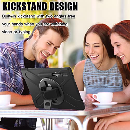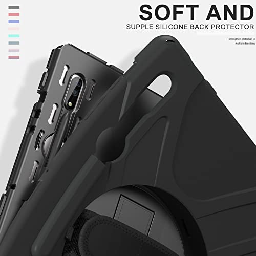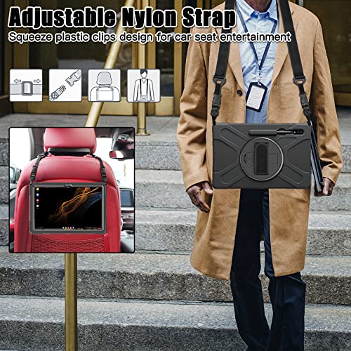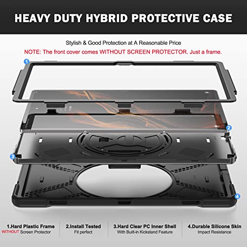 FONREST Custodia robusta per Samsung-Galaxy-Tab-S8-Ultra-14,6 '' 2022 (SM-X900/X906) con supporto per penne a S e cavalletto, resistente custodia antiurto con gancio girevole a 360°, tracolla (nero)