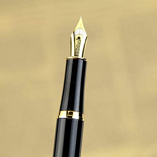 Fontana Acciaio inossidabile classico Stilografica durevole penna Business Calligrafia Penne con il mezzo d'oro Pennino per Cerimonia d'apertura, compleanno, anniversario di premiazione (nero)