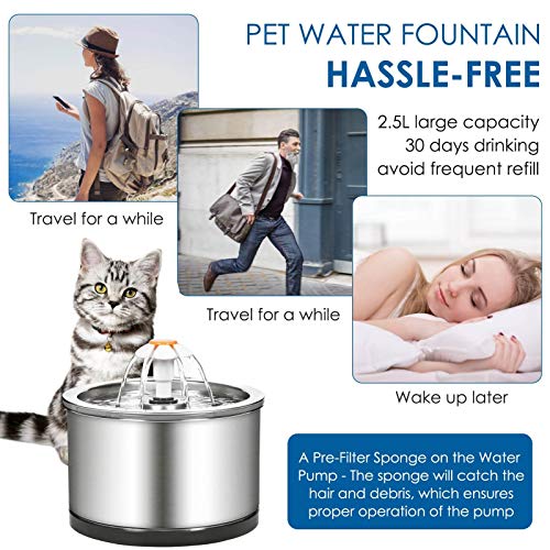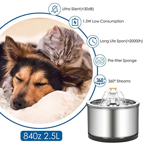 ❤304 Fontana per gatti in acciaio inossidabile: il waterher metal è resistente, innocuo per gli animali domestici, e facile da pulire, altamente raccomandato dalla maggior parte dei veterinari. Inoltre, è lavabile in lavastoviglie, migliore della ciotola di acqua di plastica o ceramica per animali domestici.