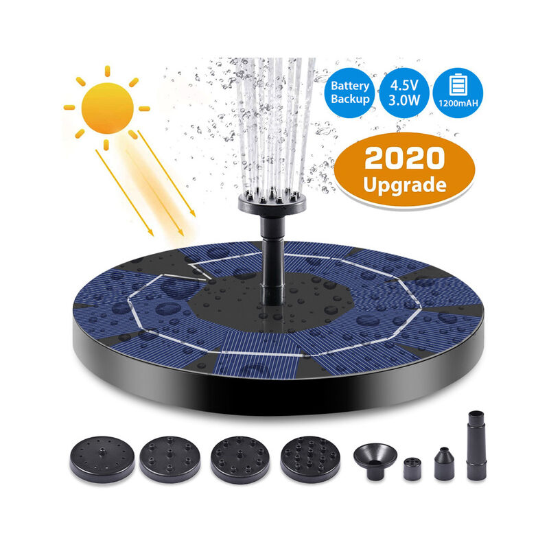 Specifiche tecniche:Nome: Fontana SolareForma: rotondaMateriale: ABS e PC di protezione UVFormato: circa Φ180mm/7.09 polliciNome di Pannello solare: In Silicio Monocristallino Solare A Resina Epossidica Pannello FotovoltaicoDimensioni del pannello solare: circa Φ177.5mm/6.99 polliciAlimentazione del pannello solare: 6V/3W 500 mAhTipo di batteria: batteria ai polimeri di litio ad alte prestazioniBatteria ricaricabile: modello 803048 tipo di batteria: 3.7V/1200mAh batteria al litio 1PCTempo di scarica: Dopo Il tramonto: light up e spruzzare acqua 3Hrs (40000Lux diretta 5H)Altezza spruzzo: >30 centimetriPompa acqua: pompa ad acqua nominale di ingresso: DC 3.7V corrente di funzionamento 130 ± 10% mAPerline lampada LED: F5 erba pallottola perline lampada 3V 0.6WColore della lampada: rosso, verde e bluModalità di giorno: acqua nebulizzata, senza luci (la luce solare sufficiente)Modalità di illuminazione bassa: non c' è acqua a spruzzo, senza luci (non abbastanza luce solare)Modalità notte