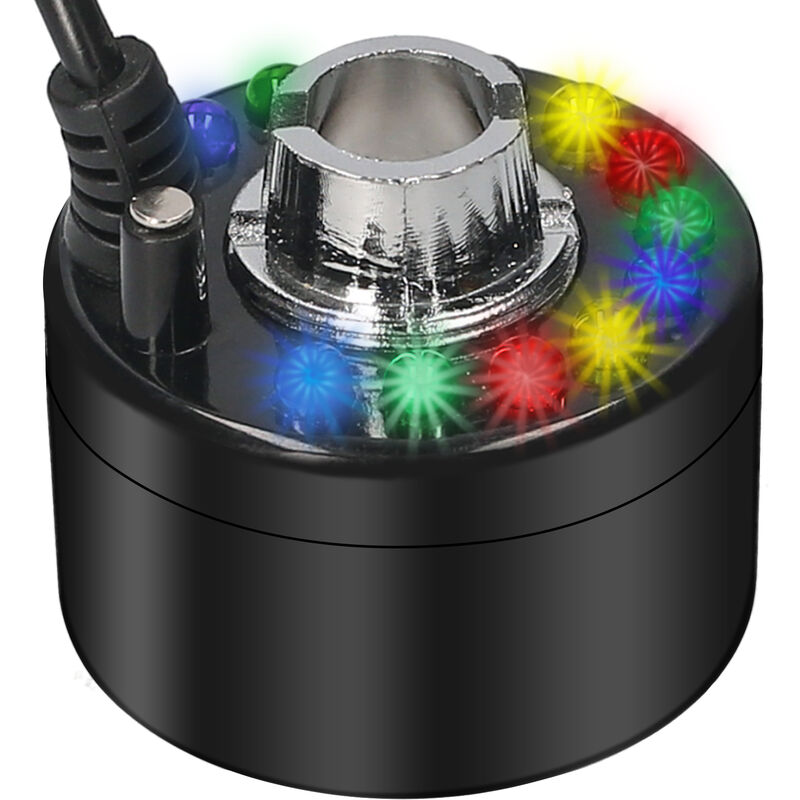 Descrizione: Questo nebulizzatore può aggiungere uno straordinario effetto nebbia al tuo laghetto o al tuo serbatoio d'acqua in pochi secondi. Spegne automaticamente il nebulizzatore quando il livello dell'acqua è basso. Perfetto per essere utilizzato nel tuo laghetto, giardino botanico, giardino roccioso, acquario, vaso, piscina, ecc. Caratteristiche: [Colorato] Mini nebulizzatore con 12 LED lampeggianti a colori casuali di notte per attirare molta attenzione. [Sicuro da usare] Dotato di sensori intelligenti, una volta che il livello dell'acqua è al di sotto del sensore del livello dell'acqua, si spegnerà automaticamente. [Facile da usare] Basta mettere il nebulizzatore ad ultrasuoni nell'acqua, quindi la nebbia esce. [Ampiamente applicabile] Puoi metterlo nel tuo laghetto, giardino roccioso, acquario, vaso, vaschetta per uccelli, ecc. Particolarmente perfetto per Halloween e altre festività. [Alta qualità] Impermeabile, anticorrosivo, il guscio resistente all'usura può essere