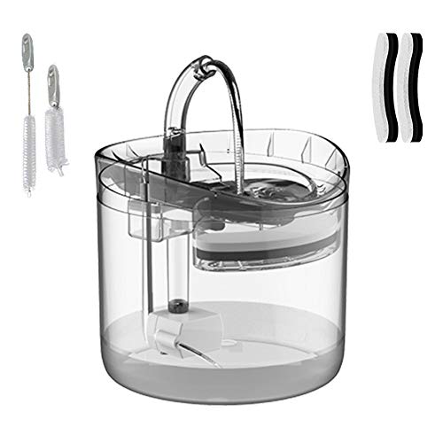 Fontanella per Cani e Gatti, Fontanella Automatica per Gatti, 1,8 L Distributore di Acqua per Animali Domestici con 2 Elementi Filtranti e 2 Kit di Spazzole per la Pulizia