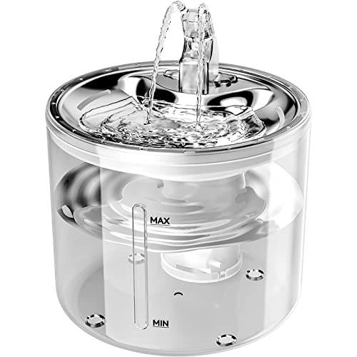 Fontanella per Gatti Cani, 2.6L/91 oz Rubinetto Fontanella Trasparente, Acciaio Inossidabile+PP Fontana per Gatti con Filtro A Carboni Attivi, Funzione termostato Automatico(Color:Trasparente)