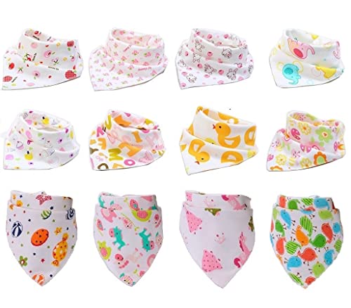 Fontee Baby Confezione da 12 Bandana Sbavare Bavaglini carina Cotone Assorbente Bavaglino per Ragazze confortevoli, lavabili in lavatrice, bavaglini altamente assorbenti per il neonato (Ragazze)