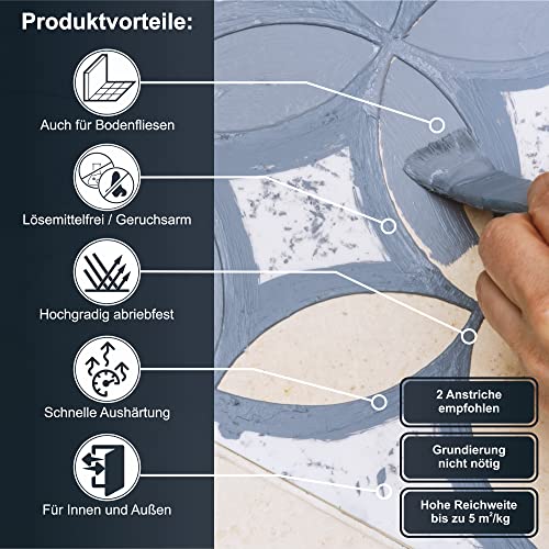🔵 OTTIMA QUALITÀ. Vernice bicomponente per piastrelle è caratterizzata da resistenza all'acqua, buona adesione, elevato potere coprente, resistenza agli urti e all'abrasione;