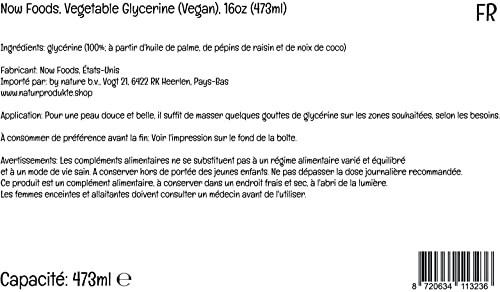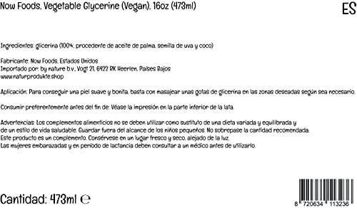 PRODOTTO ORIGINALE: La glicerina vegetale di Now Foods è adatta alla cura quotidiana della pelle ed è ottenuta da olio di palma non OGM, semi d'uva o olio di cocco