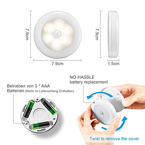 Foonii Luce Notturna Sensore di Movimento con magnetica, Alimentazione a Batteria [Classe di efficienza energetica A] (6er set, bianco caldo)