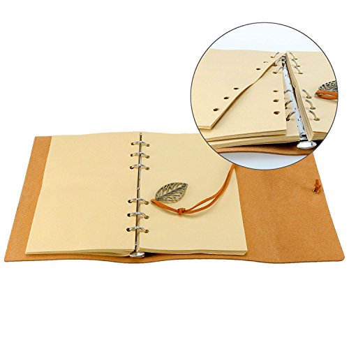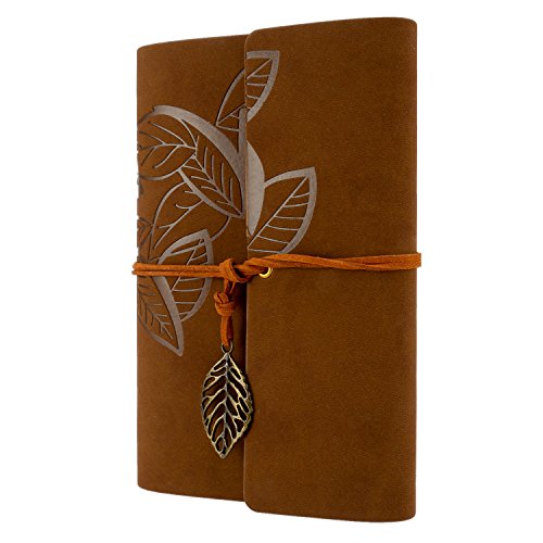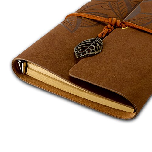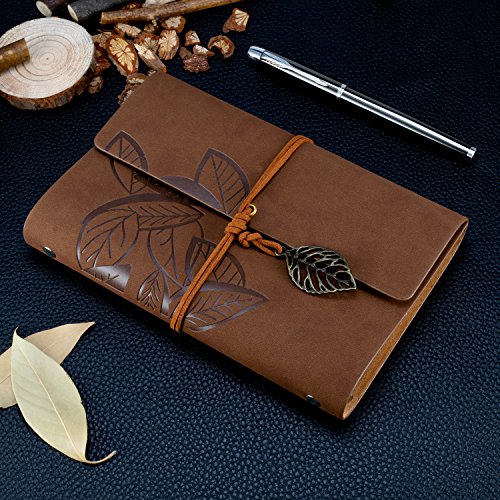 Foonii Retro Notebook copertura del cuoio di chiave foglie misteriosi 80 Blank Jotter Diario (Marrone scuro)