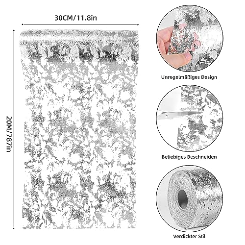 Foonii Runner da tavola in tessuto non tessuto, color argento, 30 cm x 20 m, runner da tavolo, decorazione per compleanni, matrimoni e occasioni speciali
