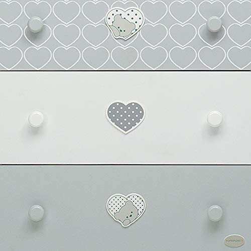 I frontali dei cassetti sono abbelliti con teneri cuoricini e orsetti;