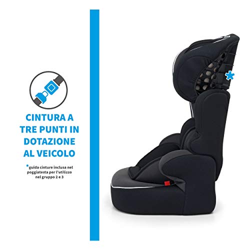 Sedile anatomico con poggiatesta regolabile in altezza (guida cintura inclusa nel poggiatesta per utilizzo gruppo 2 e 3)