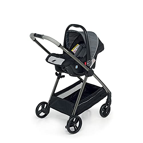 Sistema combinato pratico e funzionale, dotato di passeggino, navicella, seggiolino auto e borsa;