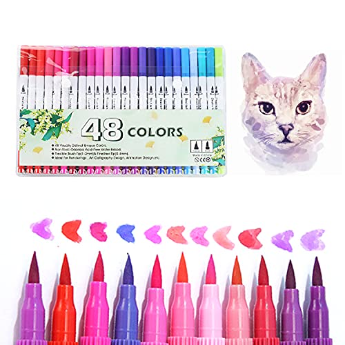 Foraco Pennarelli con punta in feltro Pennarelli colorati,Pennarelli a doppia punta,Pennarelli ad acquerello,Pennarelli colorati per adulti e studenti Colorazione,schizzi,pittura,disegno (48 colori)
