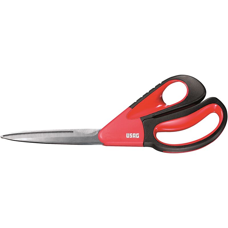 FORBICE MULTIUSO LAMA INOX PROFESSIONALE USAG 210 C 02100003 FORBICE QUALITA' SUPER PROFESSIONALE Lama microdentata antiscivolo in acciaio inox Grandi impugnature ergonomiche in bimateriale Perfetta per il taglio di alluminio, cartone, gomma, cuoio, moquette, etc Codice L mm a mm Peso gr U02100003 280 100 250