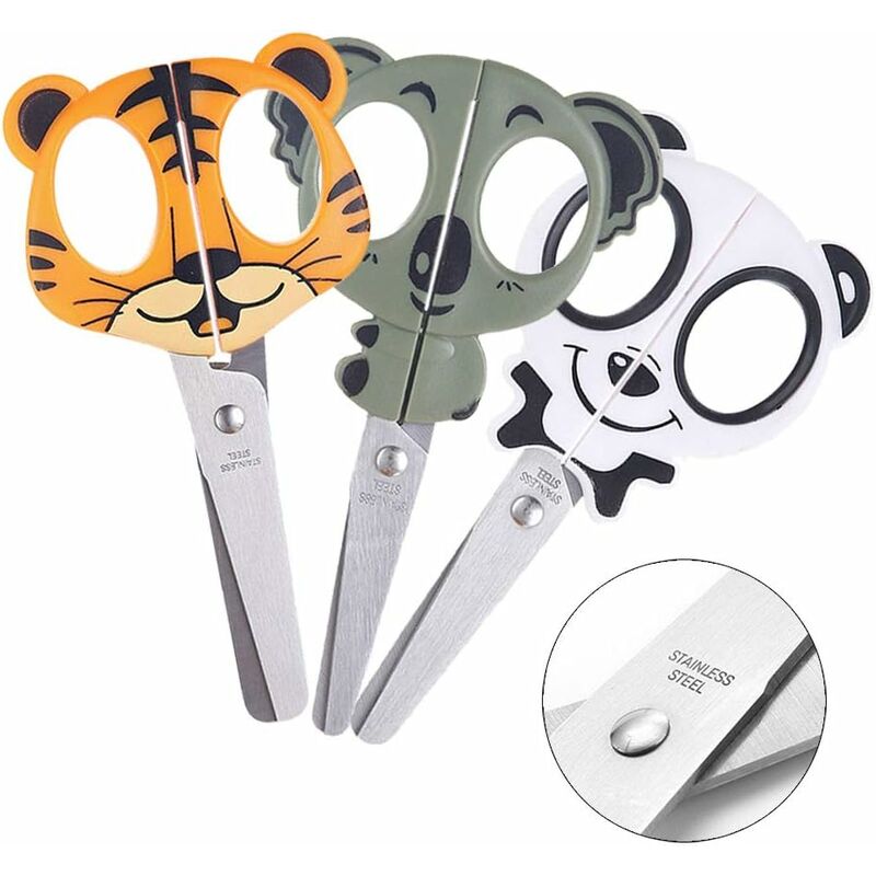 SET FORBICI PER ANIMALI - - Manici a forma di animale, con cui i bambini si divertono a tagliare. Le forbici per bambini hanno un'impugnatura rivestita con impugnatura morbida che migliora le capacità di manipolazione e impedisce che l'utensile scivoli via dalle loro mani. Forbici sicure per bambini: punte smussate e arrotondate e uno spesso bordo di sicurezza sono ideali per i bambini in età prescolare e nelle scuole elementari. Ridurre il rischio che le lame rompano la pelle. Specifica: questo set di forbici contiene 3 forbici di sicurezza per bambini. Diverse misure con le nostre forbici per bambini. Forma di koala 5,2 x 1: 132 x 75 mm;