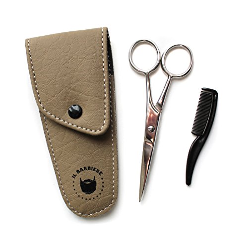 Forbici per Barba e Baffi in Acciaio Inox più Pettine e Custodia in Pelle