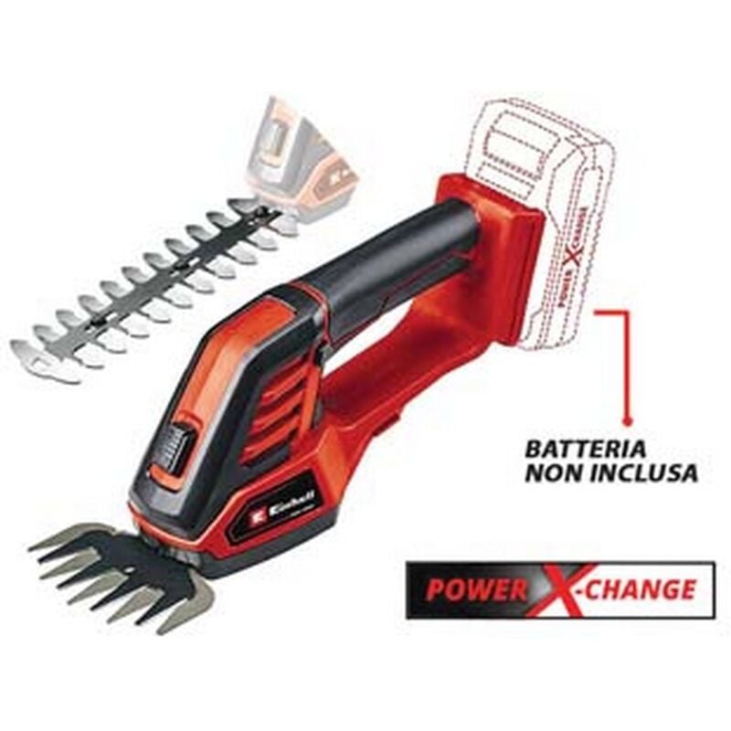 18v di potenza - larghezza di lavoro lama di taglio mm.100 - larghezza di taglio decespugliatore mm.200 - spessore di taglio decespugliatore mm.8 - distanza tra i denti decespugliatore mm.8 - famiglia power x-change - interruttore di sicurezza - ingrana