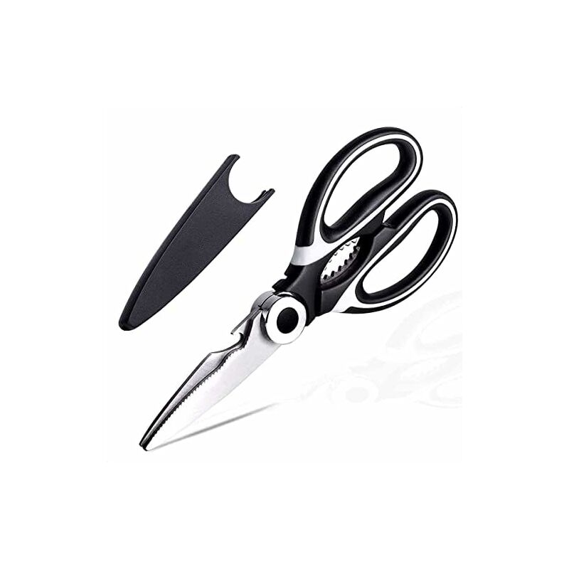 Forbici per carne resistenti alla corrosione: le nostre forbici da cucina sono realizzate in acciaio inossidabile 2Cr13 di alta qualità. Queste forbici da cucina sono durevoli, con una migliore resistenza alla rouille e una maggiore resistenza alla corrosione, e l'insieme da cucina è più affascinante delle forbici standard. [Forbici da cucina con impugnatura comoda] Forme ergonomiche e versatili dell'impugnatura delle forbici, comode da Indossare. Le forbici da chef ti fanno sentire a tuo agio e robusto e il coprilama protettivo ti protegge da lesioni. Detergente da cucina multifunzionale: questo utensile da cucina a una mano presenta un bordo della lama micro-seghettato con un taglio antiscivolo per vari compiti in cucina. Le forbici multifunzione sono dotate di un design di apertura della bottiglia nella lama, che consente di aprire rapidamente bottiglie e barattoli. Le forbici da cucina per uso generale in casa, casa, auto, esterni e forbici per pollo sono semifreddi per donne