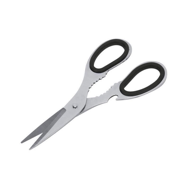 Forbici da cucina grigio acciaio inox. In stile contemporaneo. Dimensioni: 18,5 cm. Scopri l'attrezzature da cucina di qualità che avrebbe aiutato a preparare i vostri piatti come un leader.