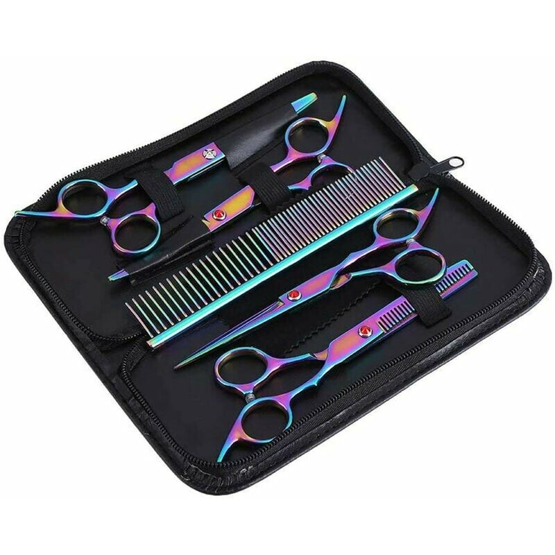 Forbici per cani multifunzionali 7 in 1 - Le forbici per peli di cane vengono utilizzate per tagliare i peli, principalmente parti piatte di peli di animali domestici. I capelli diradati vengono utilizzati per assottigliare i capelli, i capelli diventano più naturali e belli dopo il taglio;