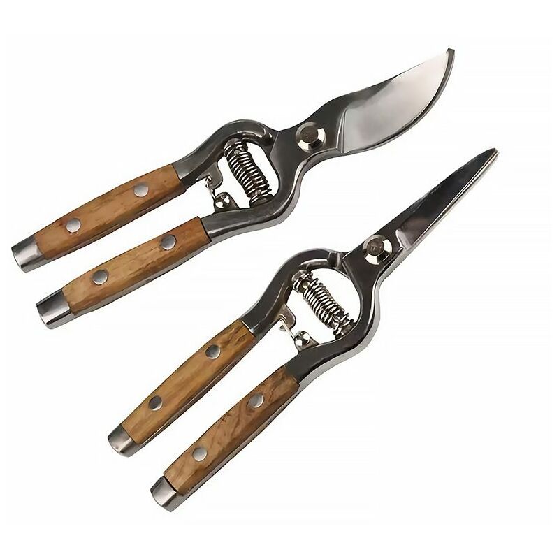 Set di 2 abete metalliche dal marchio Suan. Ideale per mantenere il tuo giardino e le tue piante. Clievo di sicurezza incluso per una facile chiusura. Materiale: lama in acciaio inossidabile e legno di cenere FSC Dimensioni: 17,5 cm Colore: metallo e legno & nbsp