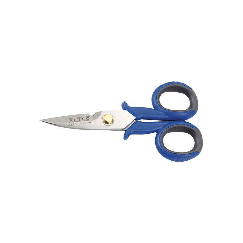Forbici in acciaio inossidabile. Bordi di taglio seghettati (antiscivolo). Manici in nylon altamente resistente e morbido elastomero. Include la funzione di spelacavi.