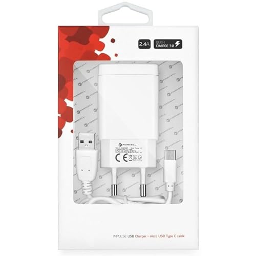 Caricatore USB 2400 mAh Quick Charge 3.0 + cavo sincrono e ricarica tipo C.