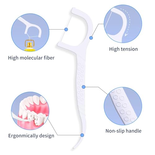 【Alta qualità e sicurezza】 : Il filo in fibra di polietilene ad alto peso molecolare non si rompe o si spezza durante il filo interdentale. Il gancio ad arco può essere utilizzato per gli stuzzicadenti. Rimuovi la placca in eccesso e i residui di cibo nelle aree difficili da raggiungere con un plettro di apertura protetto sul manico.