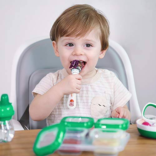 Maniglia in plastica ABS: la maniglia è in plastica ABS con design curvo, comoda per il bambino da mangiare da sola. Non ci sono rivestimenti e motivi chimici sui cucchiai che devono essere a contatto con il cibo e la bocca del bambino, che è sicuro e può essere usato dai bambini con fiducia.