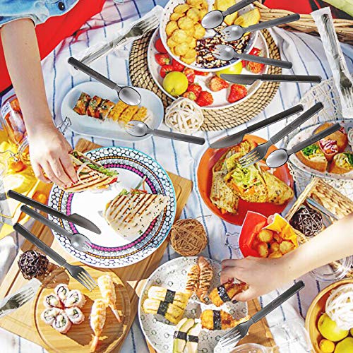 Forchette in Plastica Dura Riutilizzabili Forchette Plastica Trasparente Nero Cucchiaio Plastica Confezionate per Insalata per Buffet (40Pezzi 10 forchette 10 cucchiai 10 Cucchiaioforchetta e10 altro)