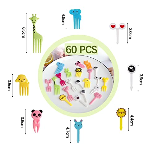 Forchettine Frutta Bambini,60 PCS Mini Cartoon Forchette da Frutta,Bambini Stuzzicadenti Bento in Plastica,Riutilizzabile per Feste per Bambini,Decorazioni di Pasticceria, Dessert, Cocktail