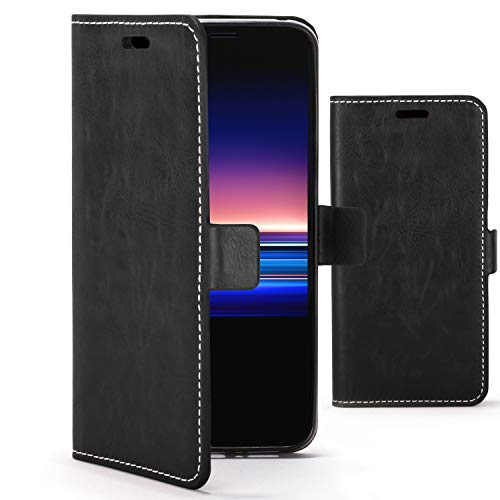 Forefront Cases Custodia per Sony Xperia 1 | Flip Cover in Vera Pelle con Portacarte | Fatta e Cucita a Mano | Supporto da Tavolo | Anti caduta e Antiurto | Nero