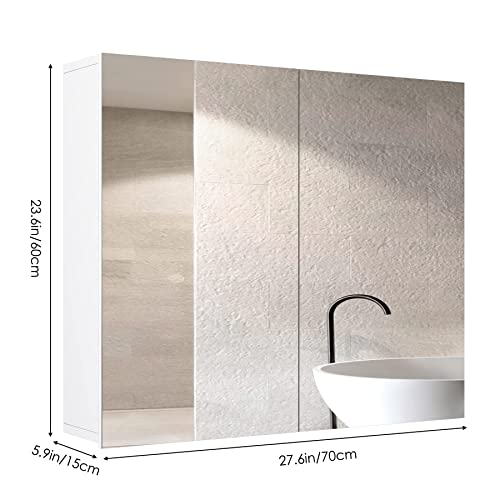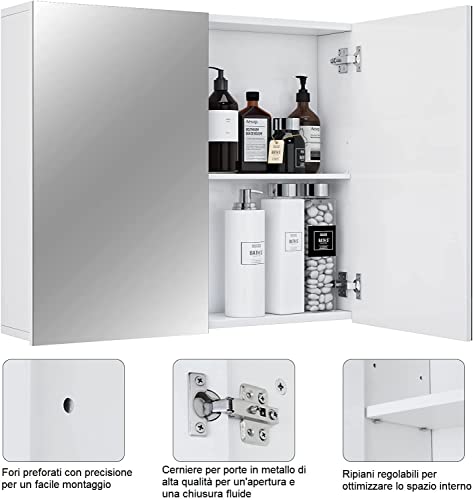 FOREHILL Armadietto Bagno con Specchio,contenitore Armadietto da Parete con Specchio e 2 Ante per il Bagno,Mobiletto Specchiera con Ripiani Regolabili per Bagno 70x15x60cm bianco