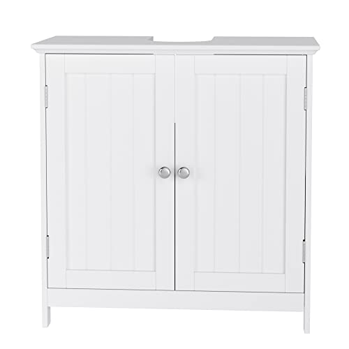 FOREHILL Mobile Sottolavabo Mobiletto per Lavandino Mobile per Bagno Sottolavabo Mobiletto Multiuso con 2 Ante e 2 Scompartimenti Ripiani Regolabili 60x30x60cm Bianco