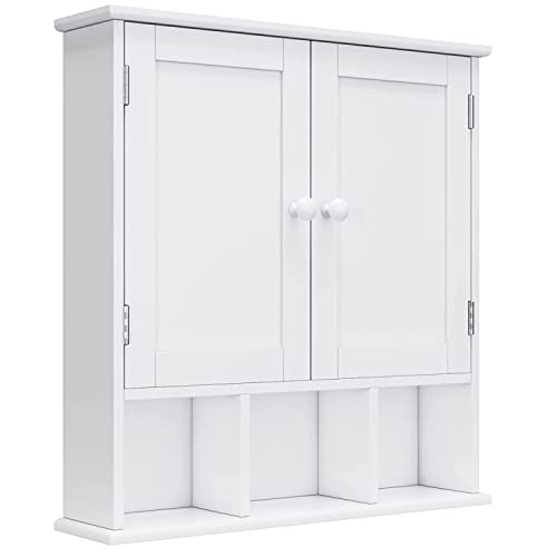 FOREHILL Mobiletto Cucina Salvaspazio con Ripiano Regolabile e 3 Scomparti,Mobile da Parete Bagno e Cucina,Armadietto Pensile Sospeso Bagno a 2 Ante,per Cucina Camera da Letto Bagno 58x56x13cm