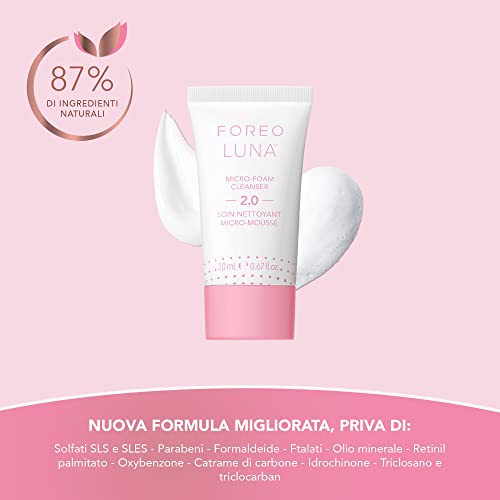 FOREO LUNA Micro-Foam Cleanser 2.0 - Detergente Viso - Struccante Viso e Occhi - Pori Minimizzati - Pulizia Viso - Tutti i Tipi di Pelle - Vegano - Vitamina E - Skincare Viso - 20 ml